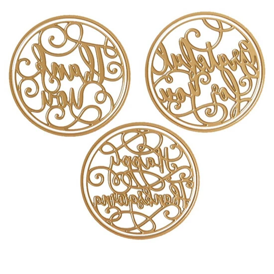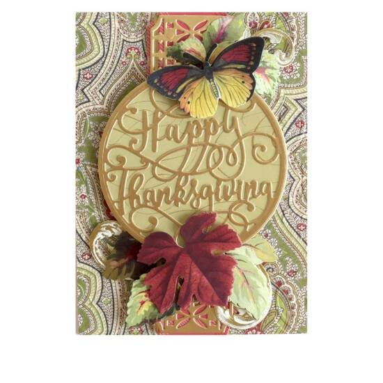 Give thanks all year long. Usethis set of 3 beautiful, calligraphic dies toshare your gratitude for others. Greetings include Happy Thanksgiving, Thank you and Grateful for you. Each greeting die also has a shadow layer die.