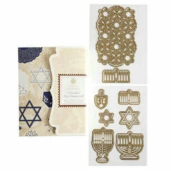 Make 20 Hanukkah cards with this mix-and-match card-making kit with embellishments and sentiments — the first Anna Griffin card kit and dies designed for Hanukkah.Dies feature Jewish symbols of the Menorah, Star of David and a dreidel.