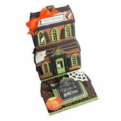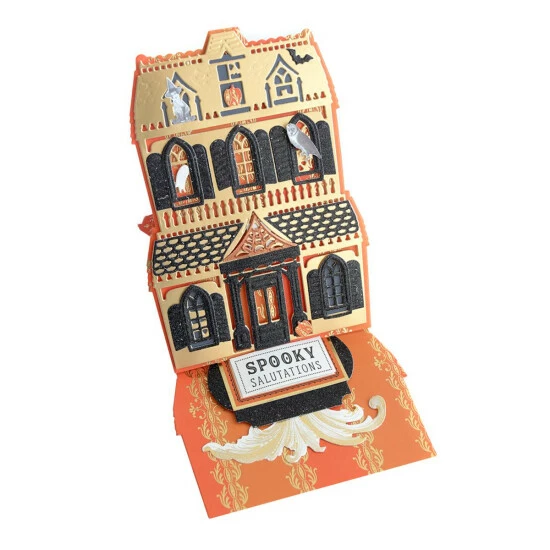 Create spooktacular Halloween Cards with this one-of-a-kind easel die set. Simply cut and decorate this adorable haunted house to make it your own. Happy House Haunting!