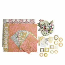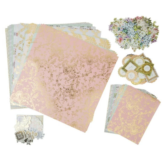 This all-inclusive set of delicate lacepatterns andfloral embellishmentshasall the coordinated papers and embellishments needed to create projects with ease. Have fun thinking of the possibilities.
