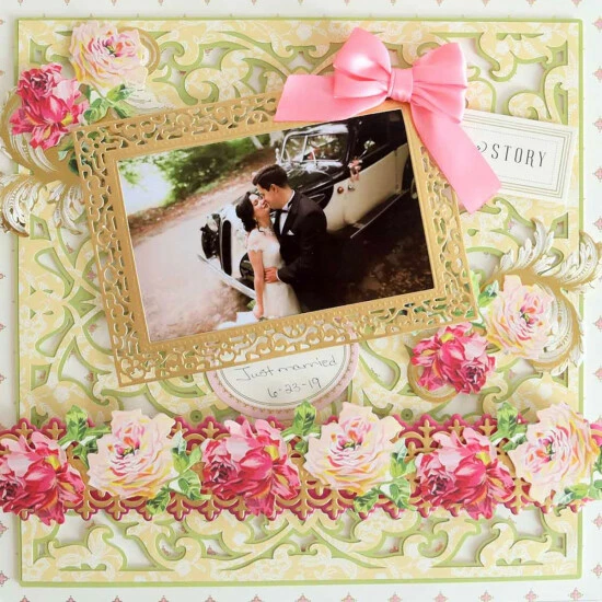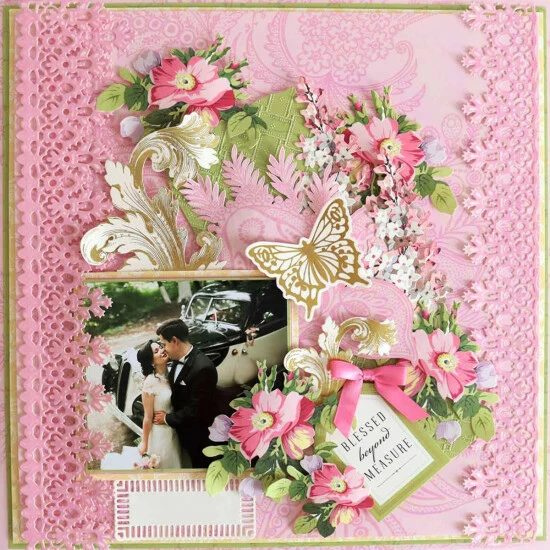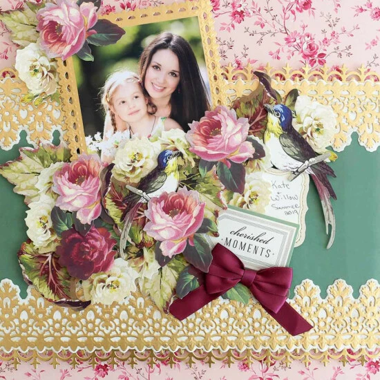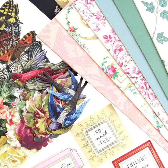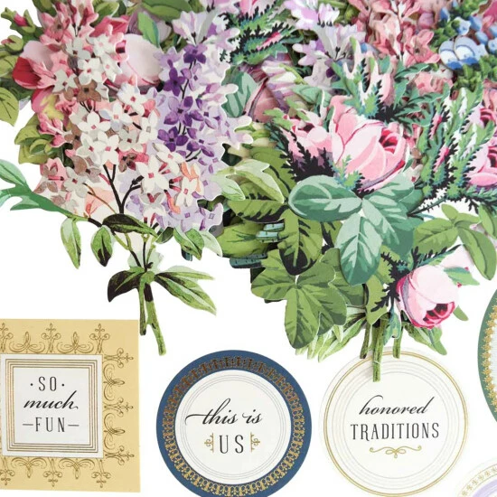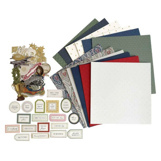 Scrolling tonals and vintage floral prints adorn this collection of Heritage card stock. Use the coordinated embellishments to create a favorite layout or an entire scrapbook.