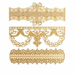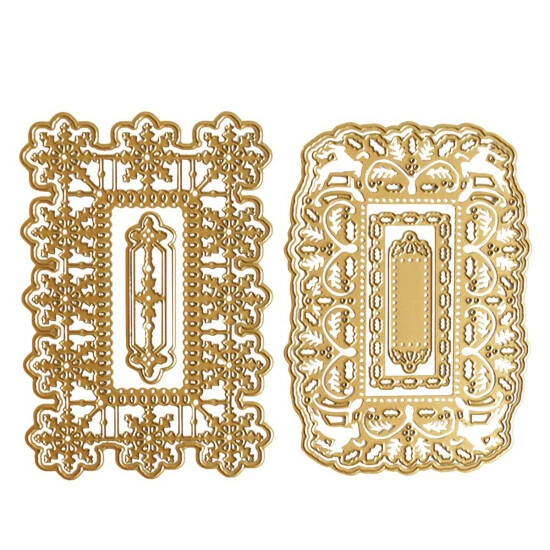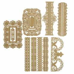 - Set Fancy holiday border dies, including 3 metal dies; largest 7.05″ x 3″; 8.5″ x 11″ Ivory Damask magnet sheet with 3 holes and instruction sheet