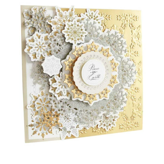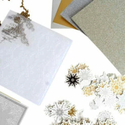 Use this holiday-inspired Snowflake craft box to make 20 cards. It includes re-usable tools, such as an embossing folder and cutting dies as well as thecoupon code for video classes showing you how to make the 3 different projectsincluded inthe kit.