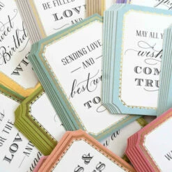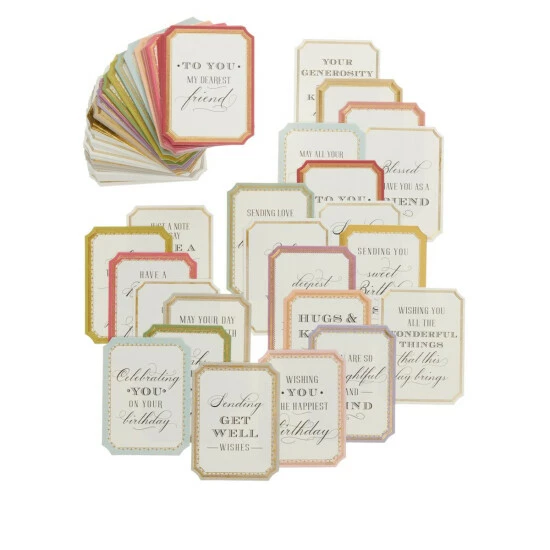 - 144 Flat die-cut sentiment stickers; 6 each of 24 designs