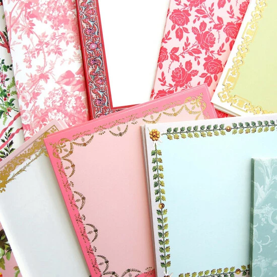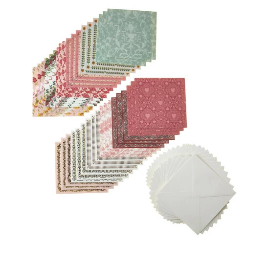 No need to measure or cut; simply embellish and mailthesepre-folded, patterned cards that are already sized for square card-making. The kit also includes coordinating ivory envelopes with a pointed flap.